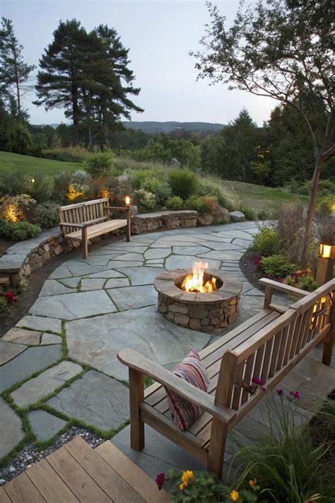 Here are some additional ideas for incorporating a stone patio with fire pit into your backyard: